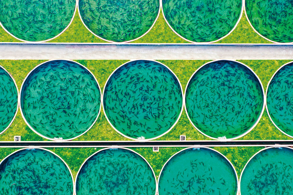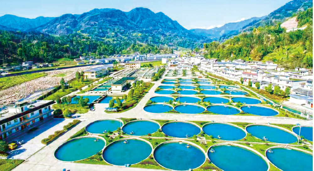 天全水产现代农业园,上百个依河而建的圆形流水鱼池中,鲟鱼正正在逛曳。图片由天全县委宣传部供给。