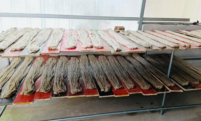 早上刚出地盘的红薯,下战书就被运往本地的红薯加工场,颠末称沉、清洗、破坏、渣浆分手等工序后,变成了白皙干爽的淀粉。红薯淀粉加工完成,还需过滤、沉淀,红薯淀粉晒干后,起头制做成明亮剔透的粉条。